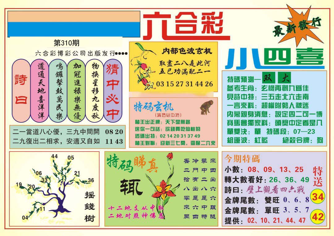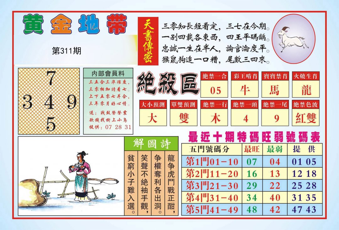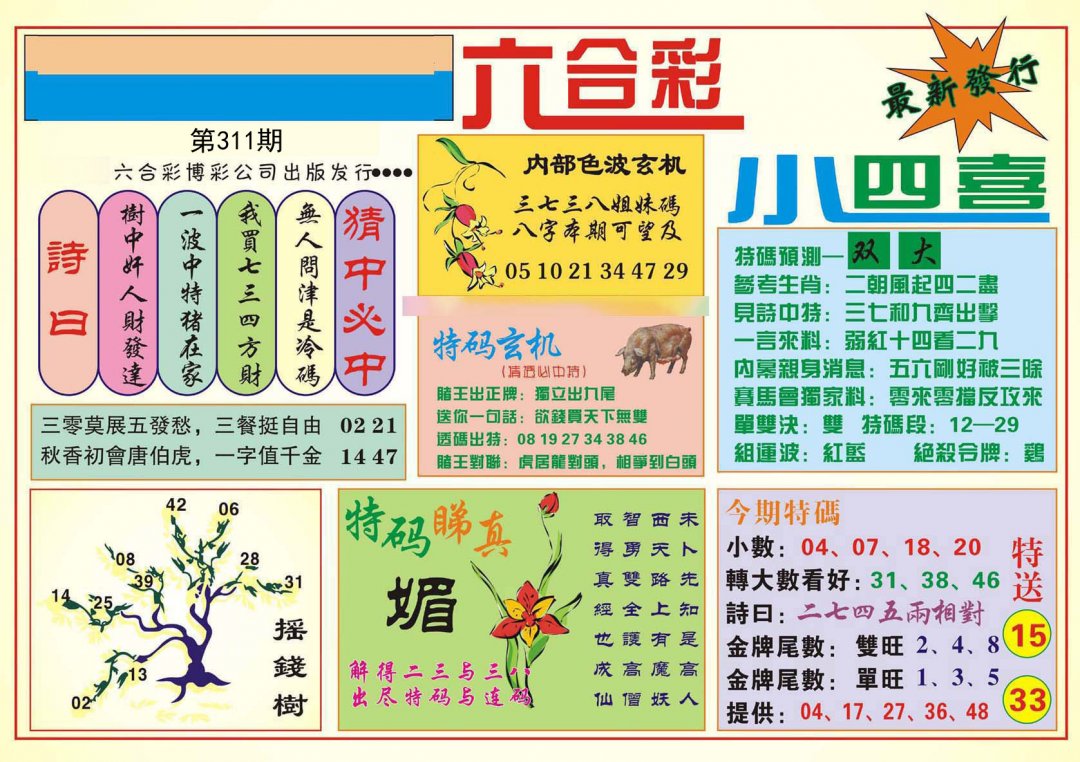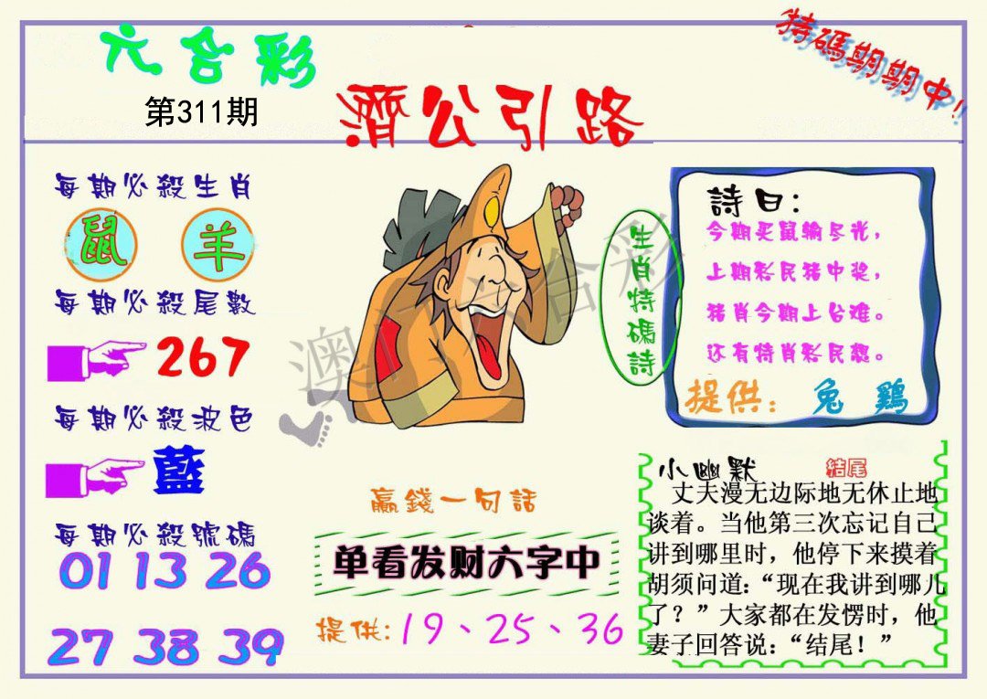 | 311期 | 鸡肖 | 蓝单 | 8尾 | 4头 | ?00 |