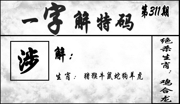 | 311期:四字爆平特 【 一手一脚】 开:?00 |